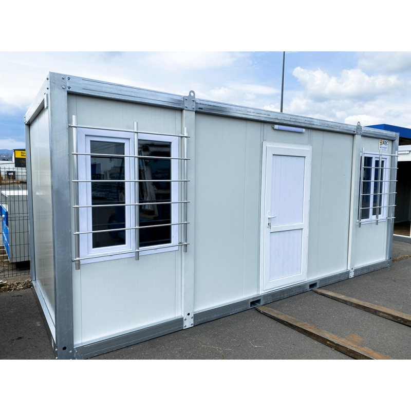 En conjunto, este bungalow de obra de 14 m² ofrece una solución modular robusta y práctica, con aislamiento en panel sándwich de poliuretano, estructura de acero galvanizado atornillada, sistema de drenaje integrado y un equipamiento eléctrico funcional, adecuada para usos temporales o semipermanentes en obra según las necesidades del proyecto.