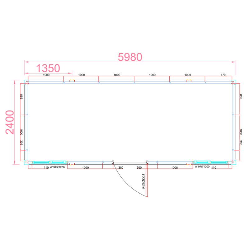 Ce bungalow de obra de 14 m² es un módulo prefabricado compacto y funcional diseñado para oficinas de obra, vestuarios, casetas de control o pequeños almacenes técnicos en entornos de construcción y logística. Sus dimensiones exteriores de 5.980 x 2.400 x 2.600 mm y dimensiones interiores de 5.780 x 2.200 x 2.350 mm aprovechan al máximo la superficie útil manteniendo una altura interior cómoda para el trabajo diario. Gracias a su peso total de 1.200 kg, se puede transportar y reubicar fácilmente con camión grúa o carretilla elevadora adecuada.