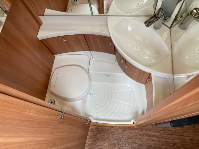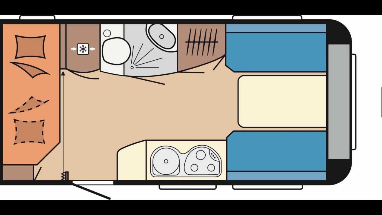 La cocina central eficiente integra fogones, fregadero funcional y nevera compressor 140L capaz de almacenar compras semanales, más baño independiente con WC Thetford cassette de vaciado sencillo. El sistema calefacción Truma asegura confort 10 meses junto con mosquiteras/oscurcedores completos que optimizan ventilación/privacidad estivales.​