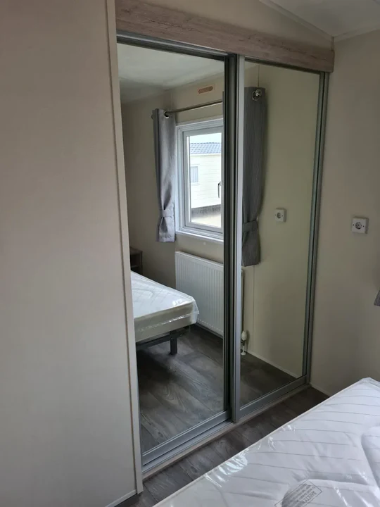 Casa móvil modelo Agla T2 de 38,5 m² totalmente aislada, distribución optimizada con 2 dormitorios (4 camas), cocina completa y baño equipado, ideal para camping familiar o segunda residencia.
