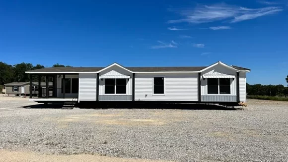 Casa móvil amplia de 3 dormitorios con porche cubierto, gran salón luminoso y distribución ideal para familias o alquiler vacacional, lista para instalar en parcela o camping.