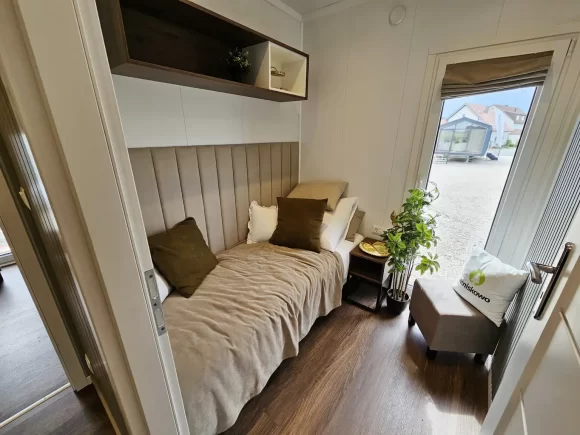 Totalmente climatizada con ventilación específica en el salón y estándar EH40 (con opción solar), garantiza confort óptimo durante todo el año mediante sistema de calefacción, refrigeración y excelente aislamiento. La distribución incluye 3 dormitorios independientes y baño completo, ofreciendo capacidad para 6-8 personas con privacidad total.​