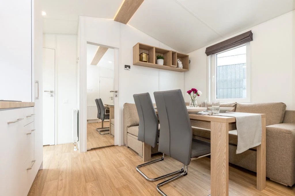 Este modelo cuenta con una cocina americana compacta, sala de estar, 3 dormitorios con 6 camas y 1 baño. ¡Estamos seguros de que será perfecto para una casa de vacaciones familiar junto al lago!