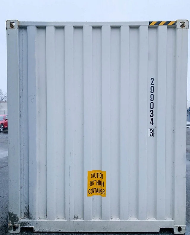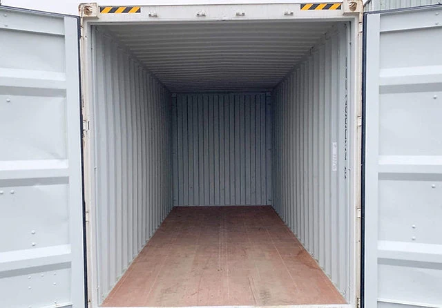 Contenedor estándar 20 pies seminuevo con puertas dobles alta seguridad, suelo madera antideslizante y dimensiones interiores 5,90 x 2,35 x 2,39 m, versátil para almacenamiento obras, logística o eventos temporales.