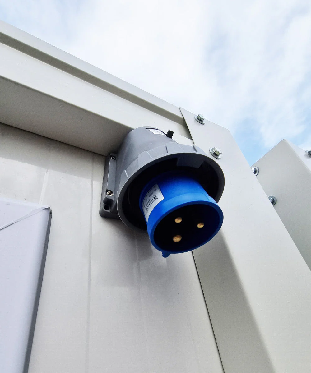 La puerta acero 65×190 cm con cerradura 3 llaves y ventana PVC 60×40 cm ventilada garantizan privacidad/seguridad eventos 24/7, complementados por conexión IP68 impermeable, FI 25A y tuberías PPRC fría caliente profesionales. Los raíles montacargas inferiores permiten reubicaciones rápidas sin grúa pesada, ideal festivales itinerantes o ferias multisitio.