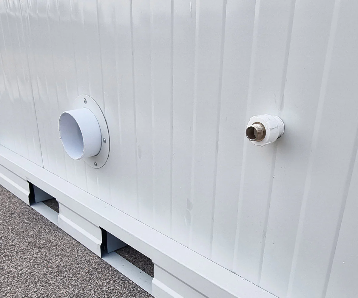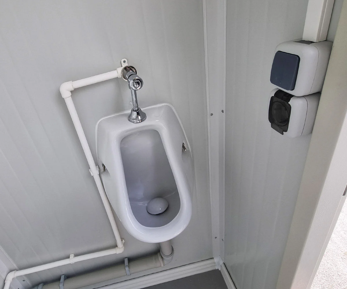 Contenedor sanitario monoplaza 120x165cm CE con urinario y lavabo.